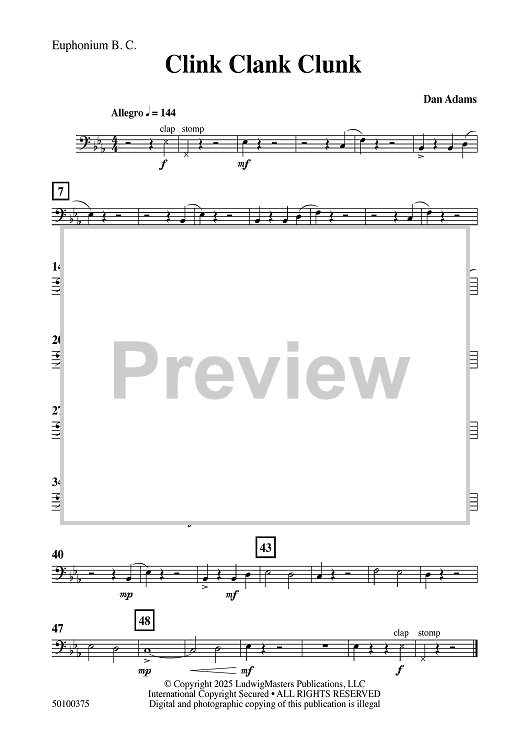 Digital Sheet Music for Clink Clank Clunk - Euphonium BC by Dan Adams scored for Concert Band; id:509462