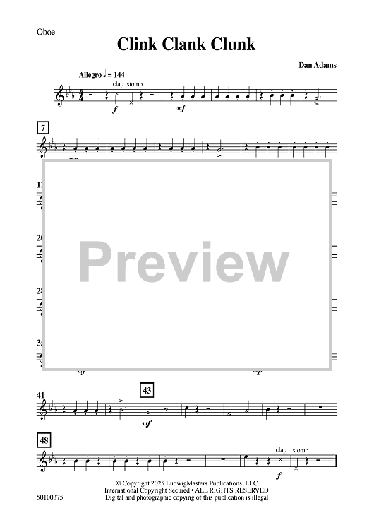 Digital Sheet Music for Clink Clank Clunk - Oboe by Dan Adams scored for Concert Band; id:509449