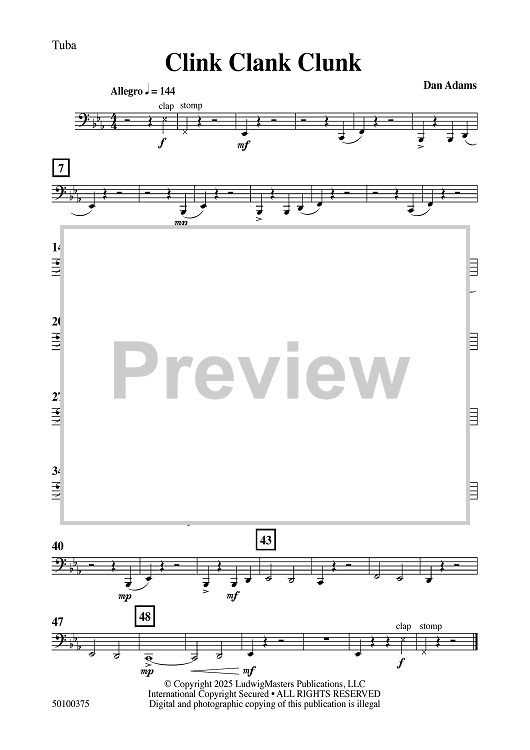 Digital Sheet Music for Clink Clank Clunk - Tuba by Dan Adams scored for Concert Band; id:509463