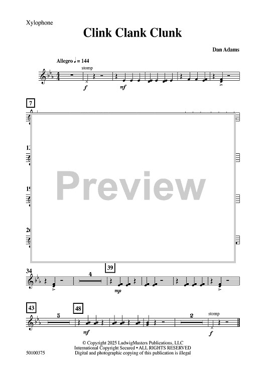 Digital Sheet Music for Clink Clank Clunk - Xylophone by Dan Adams scored for Concert Band; id:509465