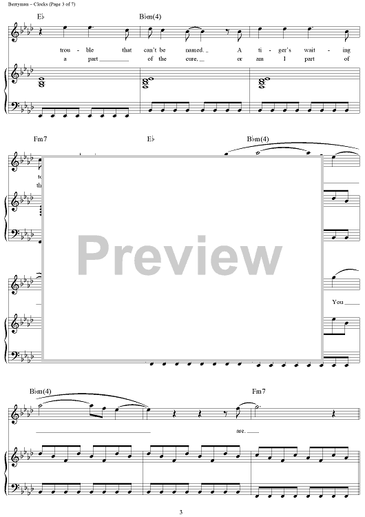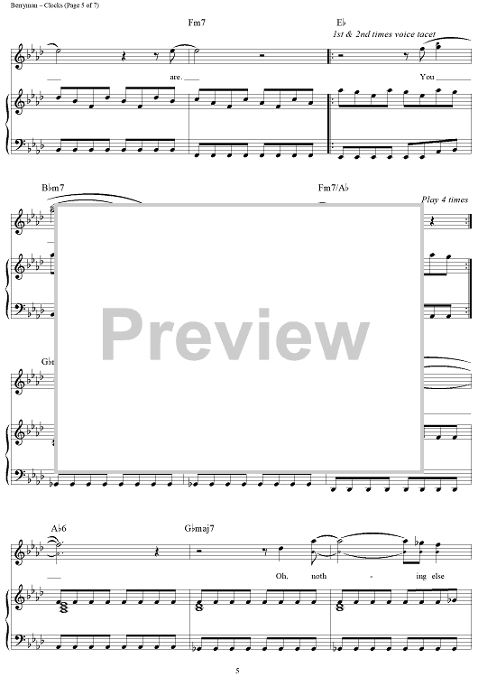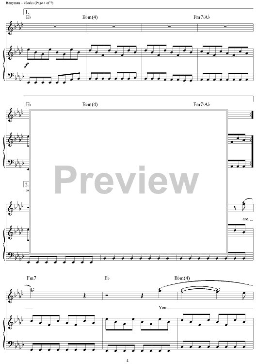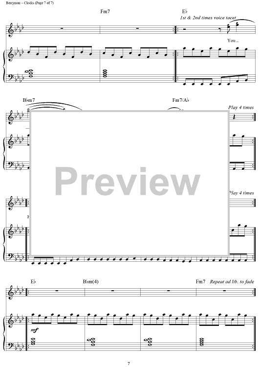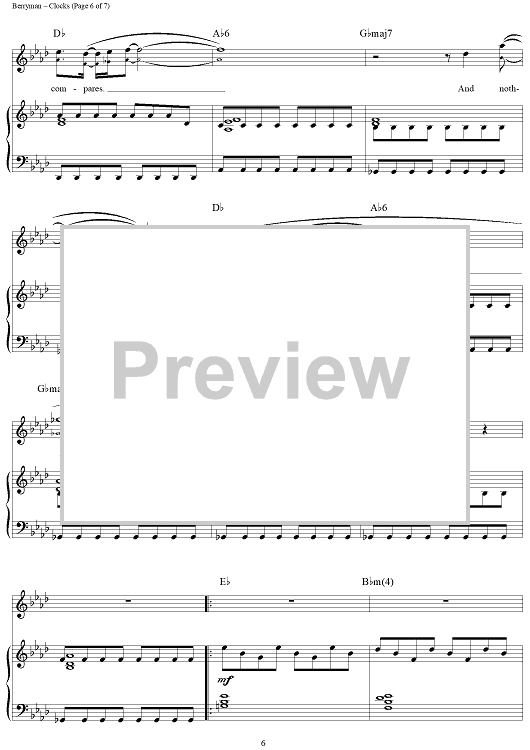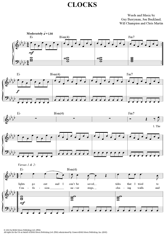 Digital Sheet Music for Clocks by Chris Martin, Coldplay, Jonny Buckland, Guy Berryman scored for Piano/Vocal/Chords; id:321259