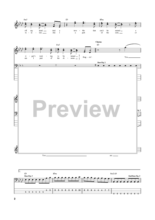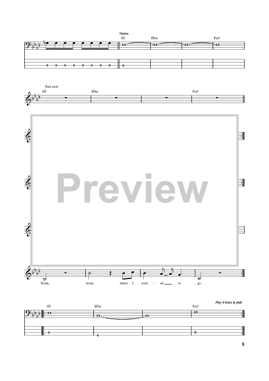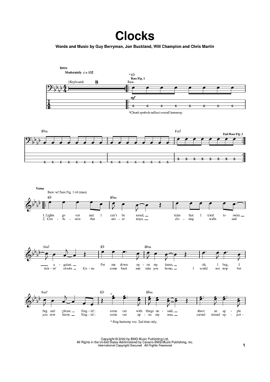 Digital Sheet Music for Clocks by Coldplay, Jonny Buckland, Guy Berryman scored for Bass Tab; id:374362