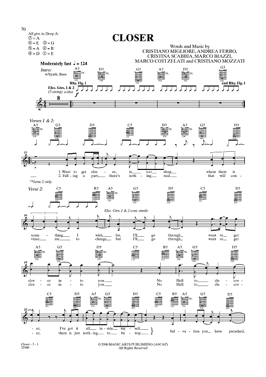 Digital Sheet Music for Closer by Lacuna Coil, Cristiano Migliore, Andrea Ferro, Cristina Scabbia, Marco Biazzi, Marco Coti Zelati, Cristiano Mozzati scored for Guitar Tab/Vocal; id:359998