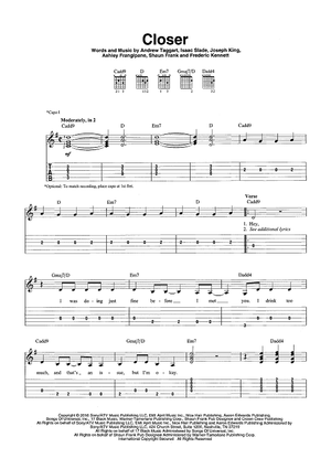 Digital Sheet Music for Closer by Andrew Taggart, The Chainsmokers, Ashley Frangipane, Shaun Frank, Frederic Kennett, Alex Pall scored for Easy Guitar Tab/Vocal; id:465615