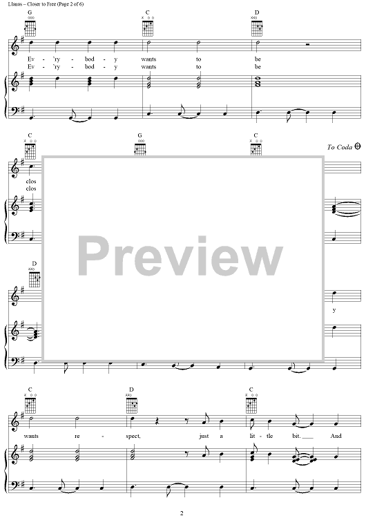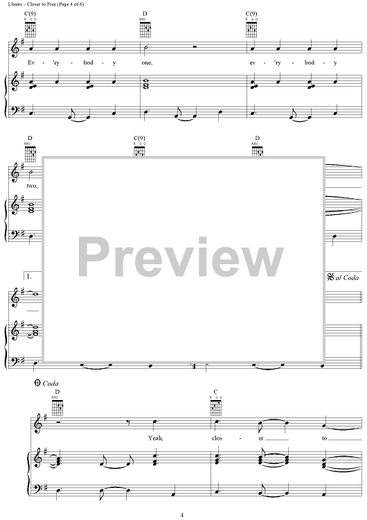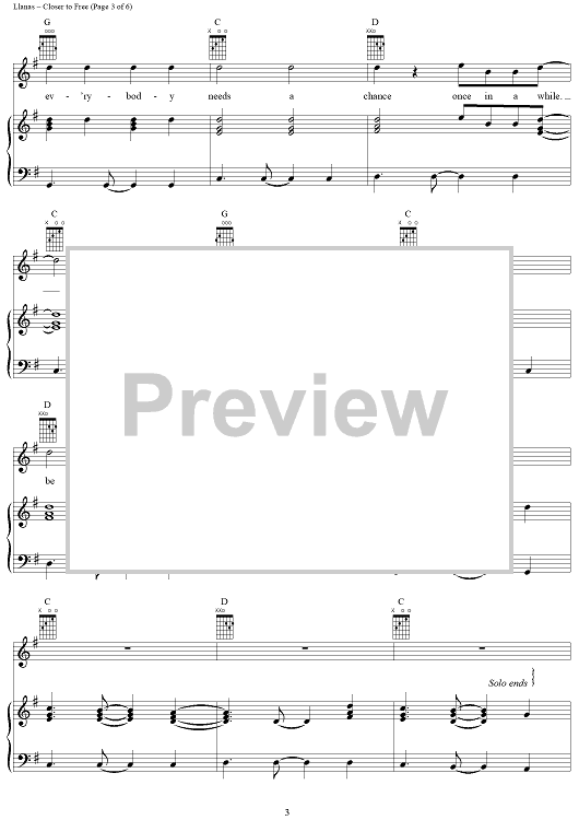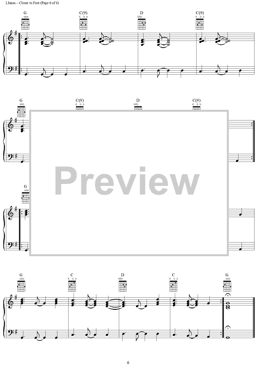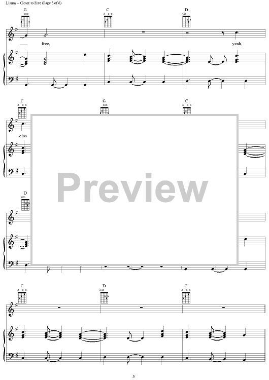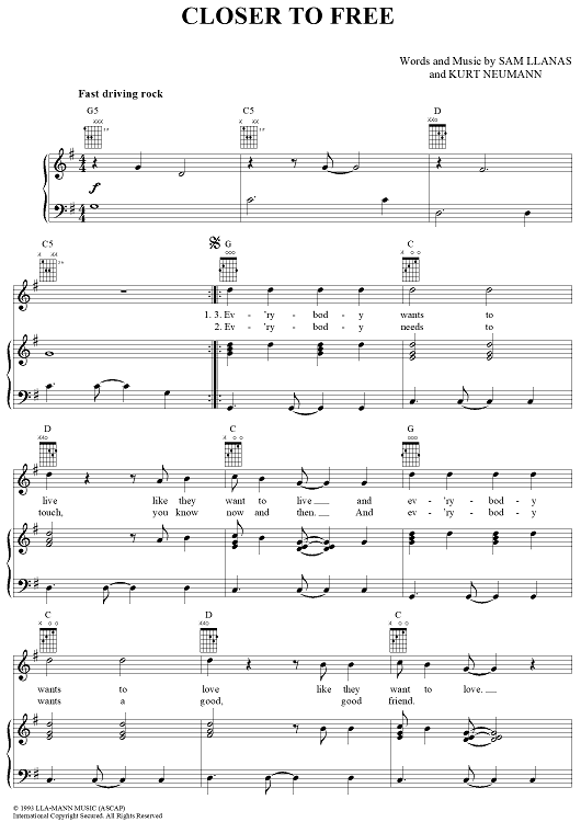 Digital Sheet Music for Closer to Free by BoDeans, Sam Llanas, Kurt Neumann scored for Piano/Vocal/Chords; id:372576