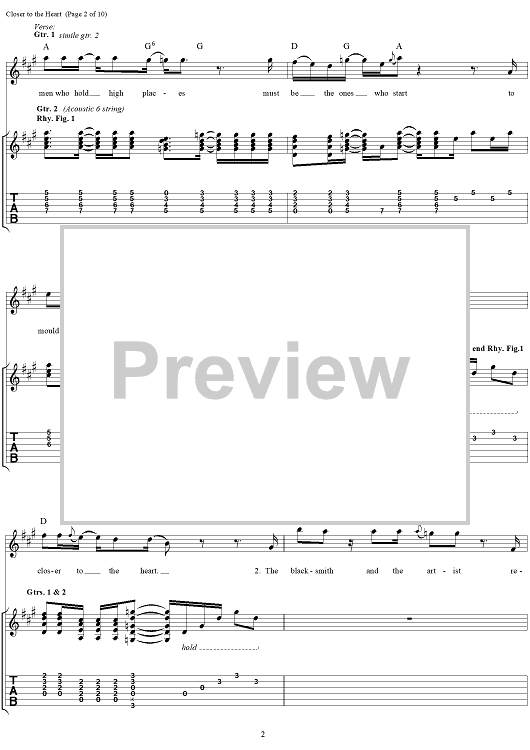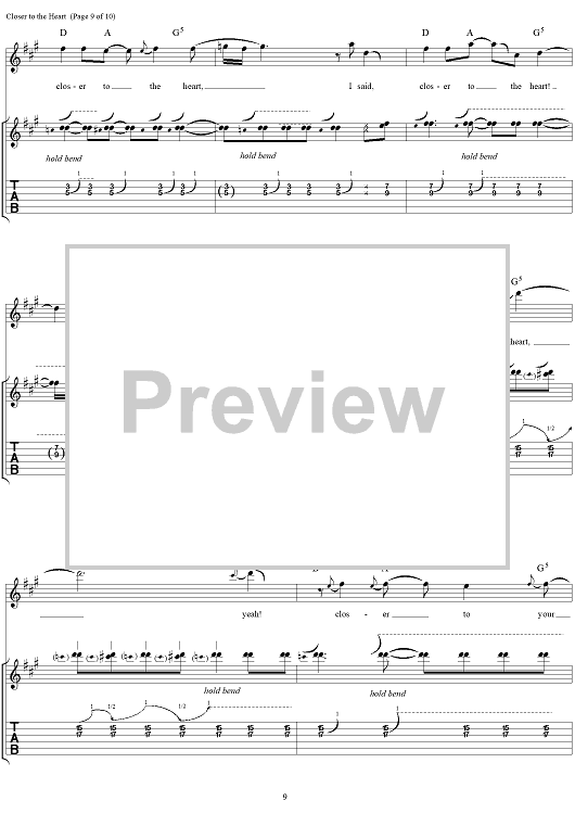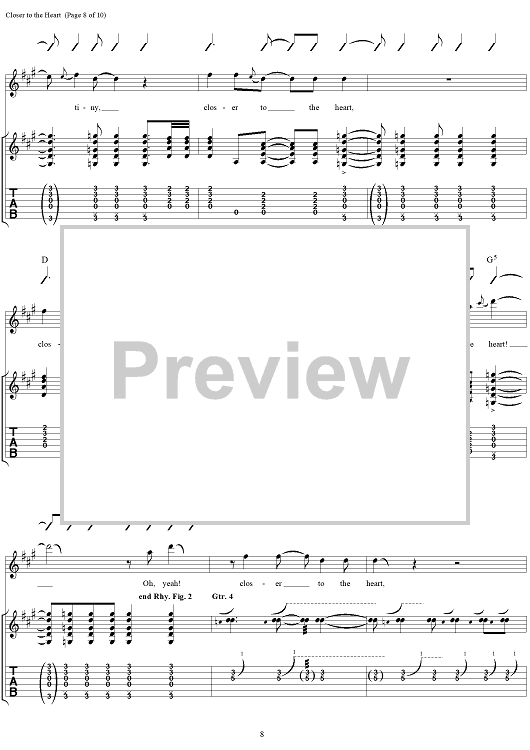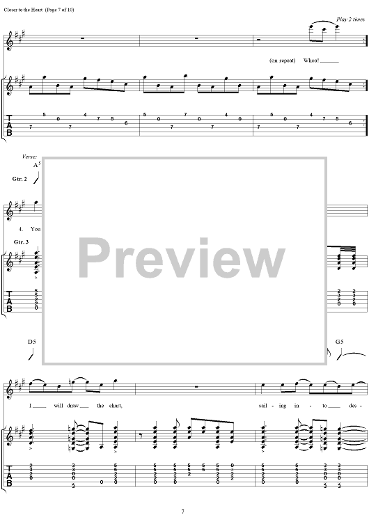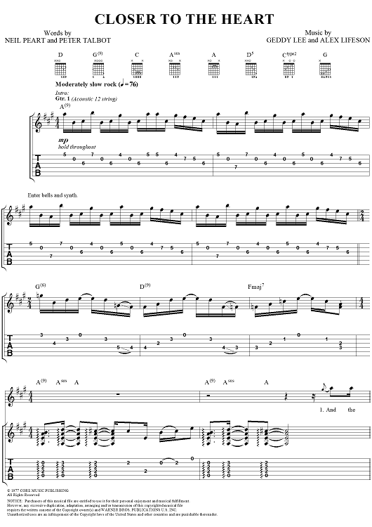 Digital Sheet Music for Closer to the Heart by Rush, Geddy Lee, Alex Lifeson, Neil Peart, Peter Talbot scored for Guitar Tab/Vocal; id:109015