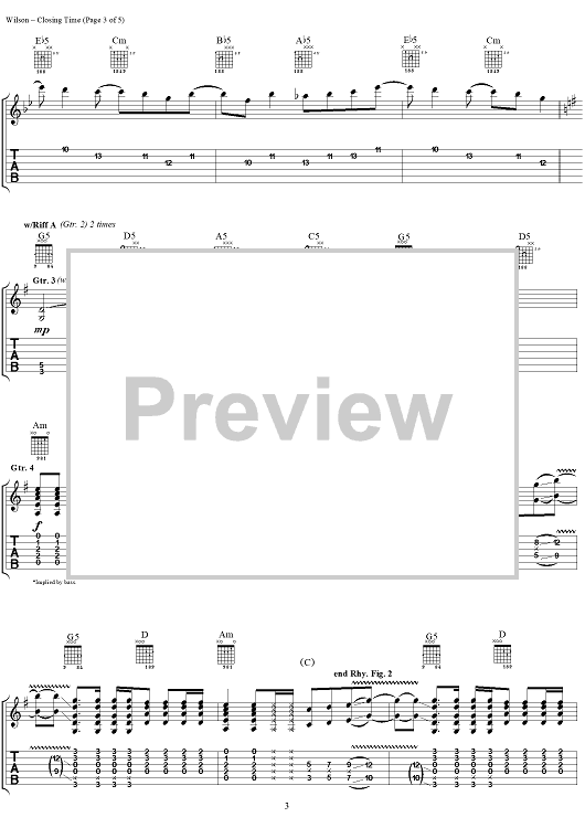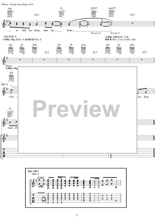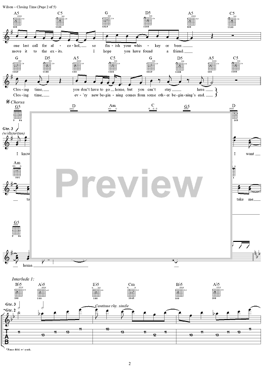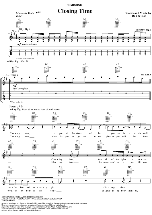 Digital Sheet Music for Closing Time by Semisonic, Dan Wilson scored for Guitar Tab/Vocal; id:110038
