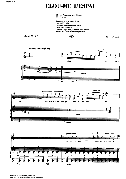 Digital Sheet Music for Clou-me l'espai - Score by , Mercè Torrents scored for Voice/Piano; id:348951