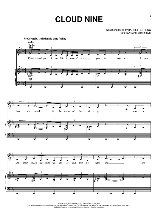 Digital Sheet Music for Cloud Nine by Norman Jesse Whitfield, Barrett Strong, The Temptations scored for Piano/Vocal/Chords; id:389730