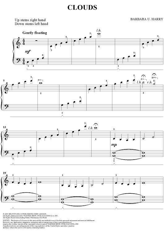 Digital Sheet Music for Clouds by Barbara Harry scored for Piano Solo; id:292860