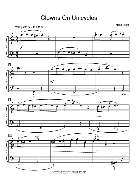 Digital Sheet Music for Clowns On Unicycles by Mona Rejino scored for Piano; id:393582