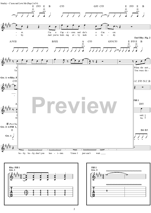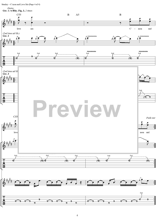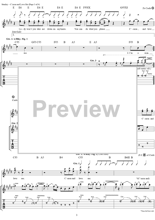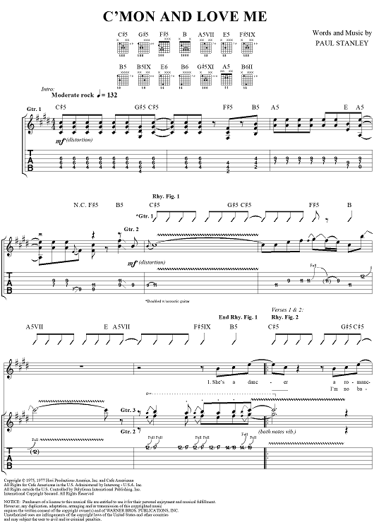 Digital Sheet Music for C'mon and Love Me by Paul Stanley, KISS scored for Guitar Tab/Vocal; id:206902