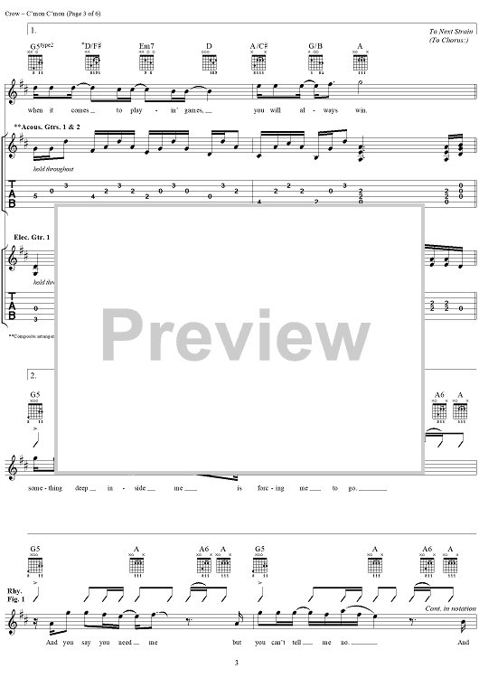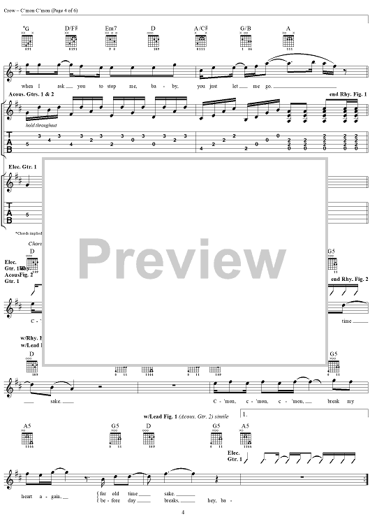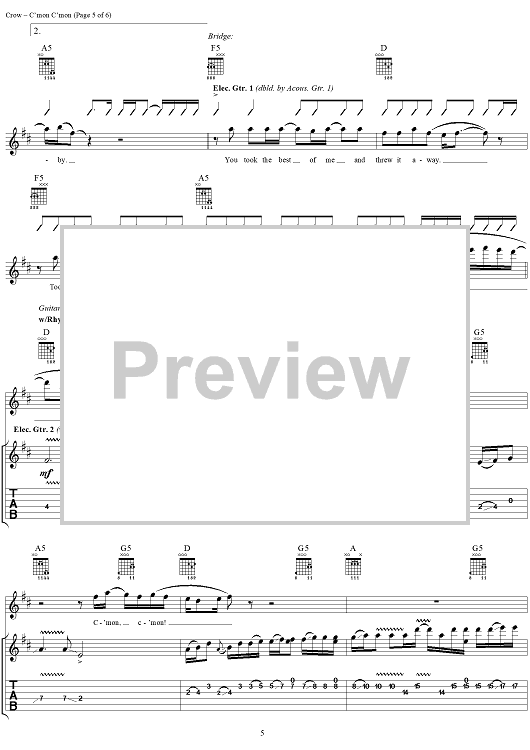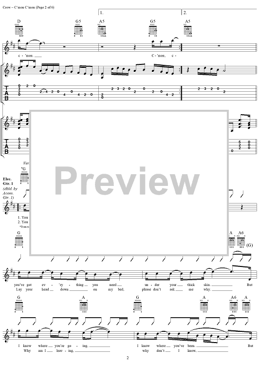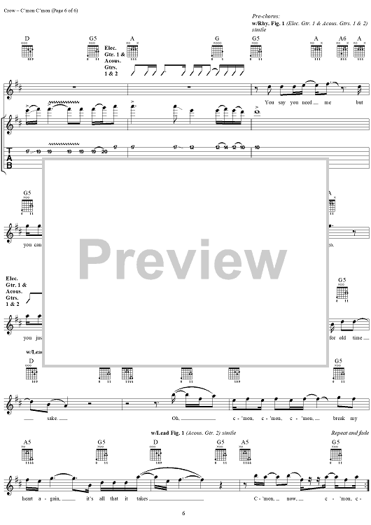 Digital Sheet Music for C'mon C'mon by Sheryl Crow scored for Guitar Tab/Vocal; id:292053
