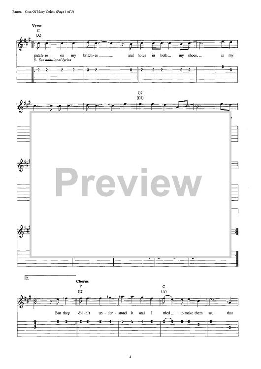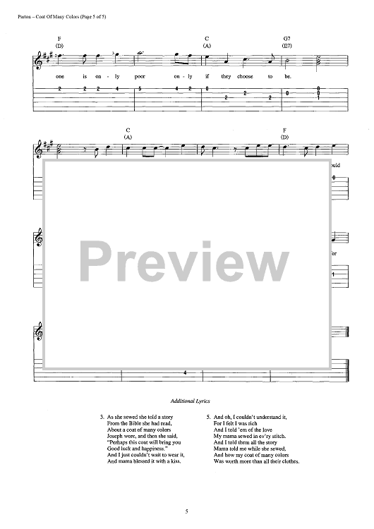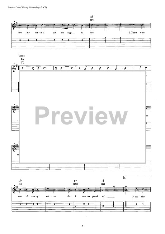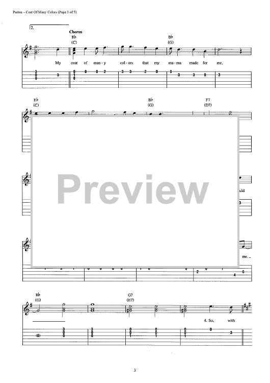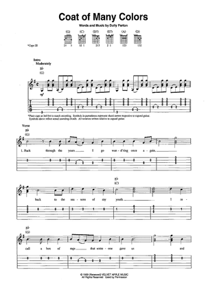 Digital Sheet Music for Coat Of Many Colors by Dolly Parton scored for Easy Guitar Tab/Vocal; id:397199