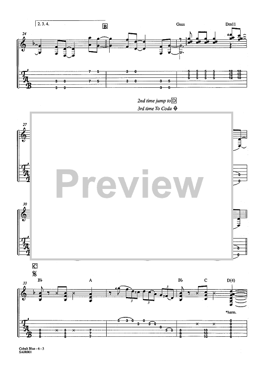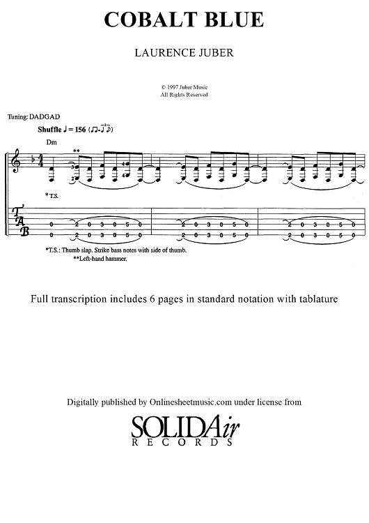 Digital Sheet Music for Cobalt Blue (No MP3) by , Laurence Juber scored for Guitar Tab; id:452014