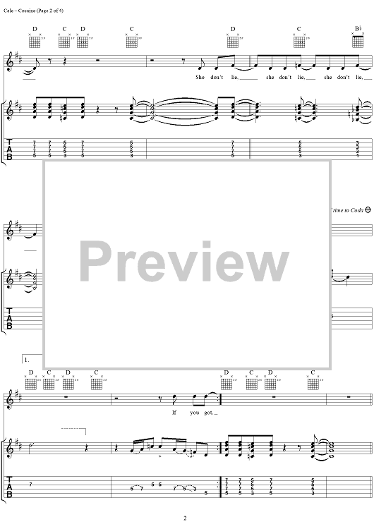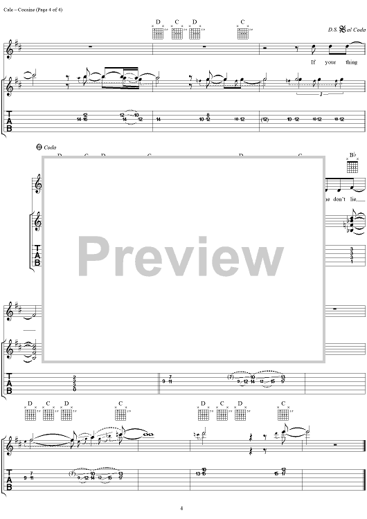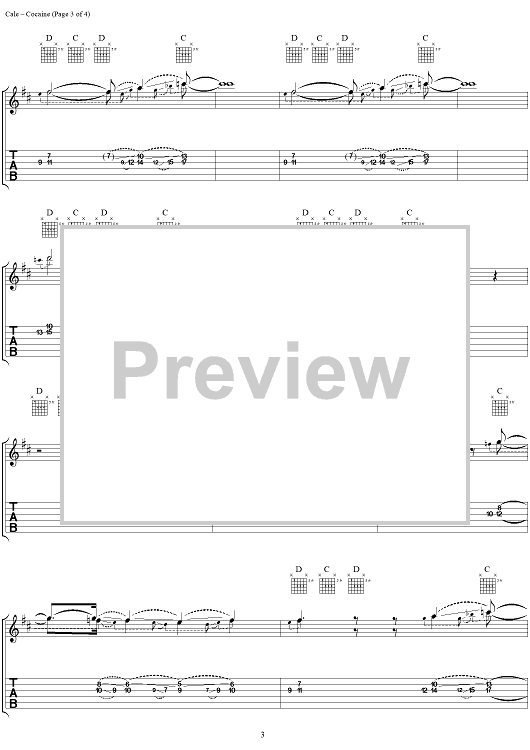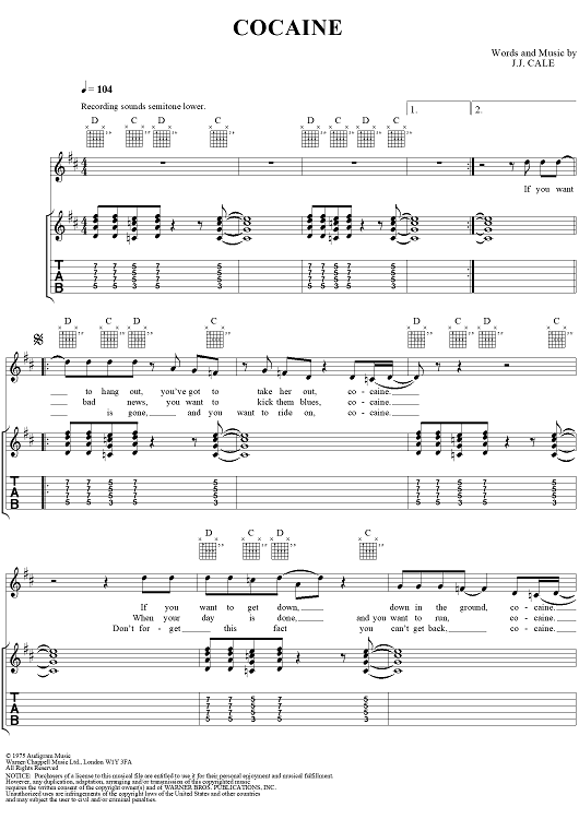 Digital Sheet Music for Cocaine by J. J. Cale scored for Guitar Tab/Vocal; id:273492