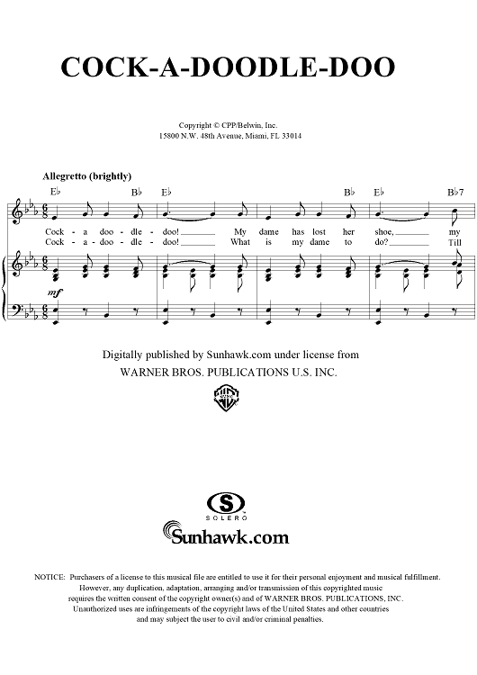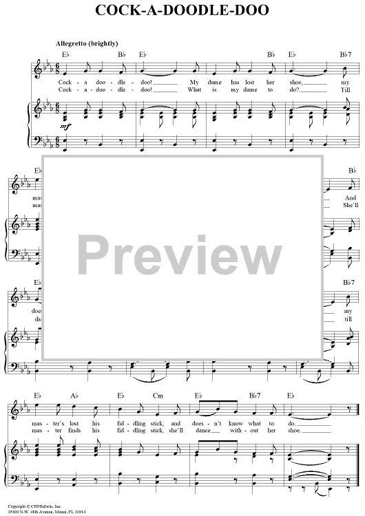 Digital Sheet Music for Cock-A-Doodle-Doo by Traditional scored for Easy Piano/Vocal; id:120426