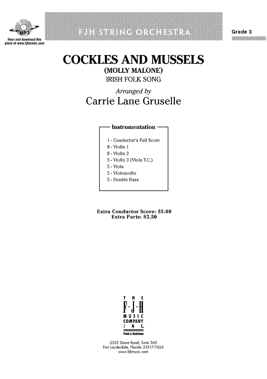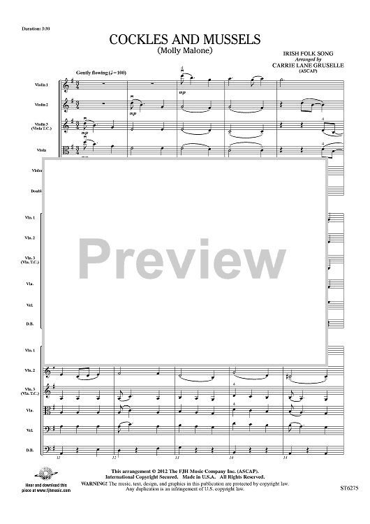 Digital Sheet Music for Cockles and Mussels (Molly Malone) - Score by Carrie Lane Gruselle, Irish Folk Song scored for String Orchestra; id:432010