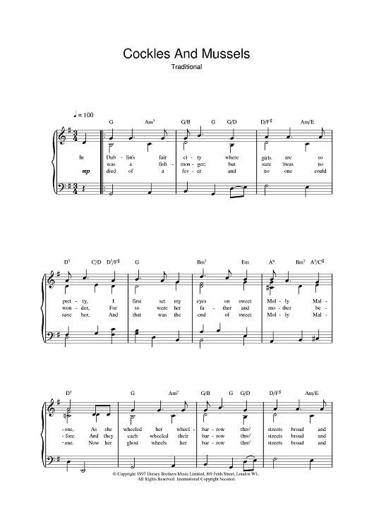 Digital Sheet Music for Cockles And Mussels by scored for Piano/Vocal/Chords; id:378669