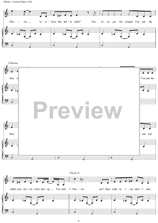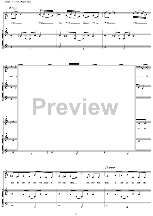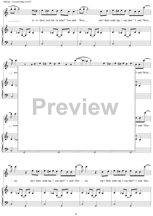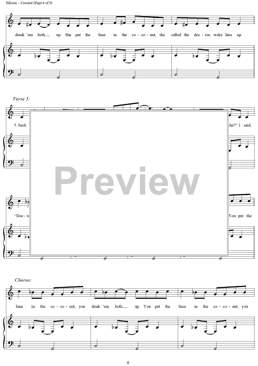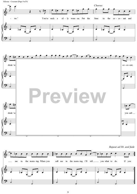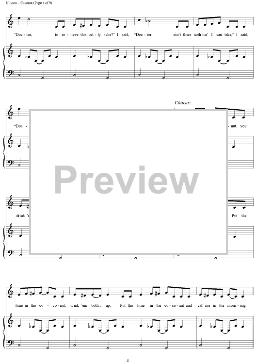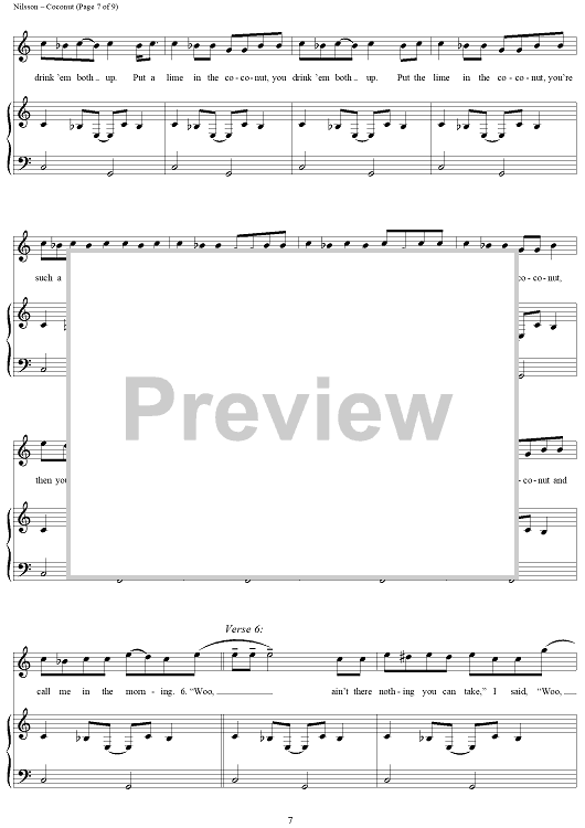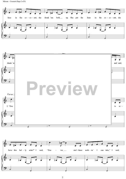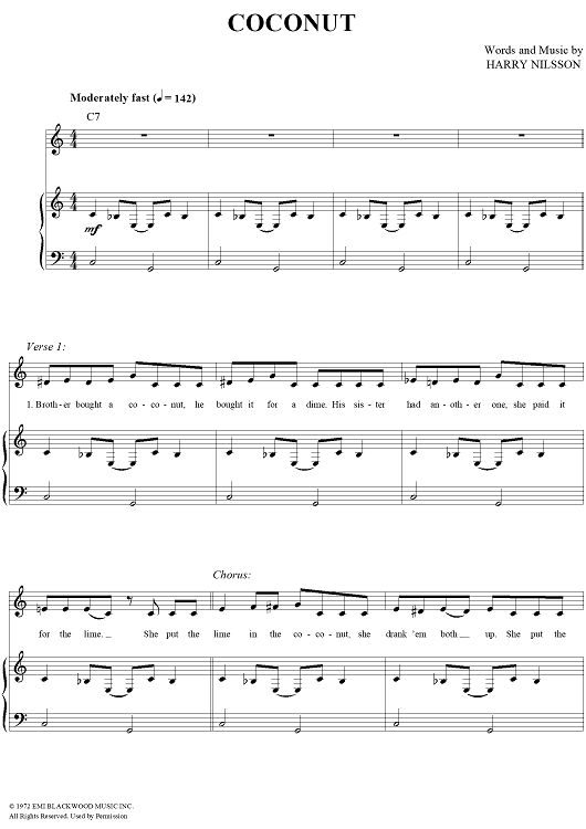 Digital Sheet Music for Coconut by Harry Nilsson scored for Piano/Vocal/Chords; id:207086
