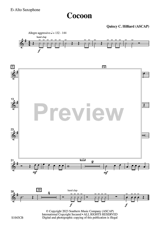Digital Sheet Music for Cocoon - Eb Alto Saxophone by Quincy C. Hilliard scored for Concert Band; id:508561