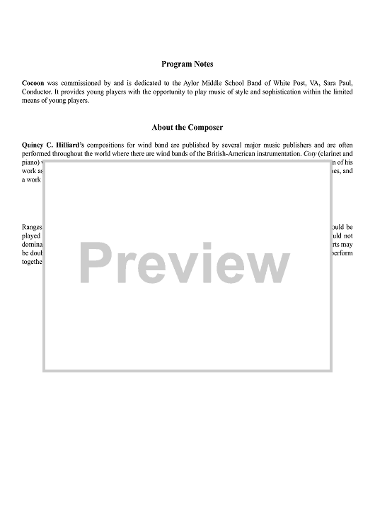 Digital Sheet Music for Cocoon - Full Score by Quincy C. Hilliard scored for Concert Band; id:508555