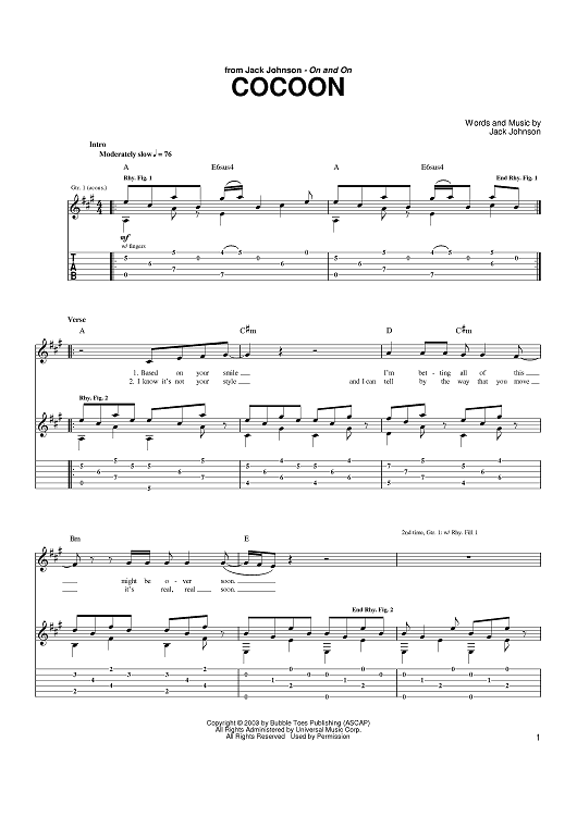 Digital Sheet Music for Cocoon by Jack Johnson scored for Guitar Tab; id:373166