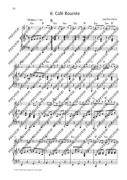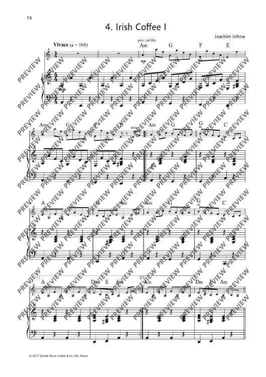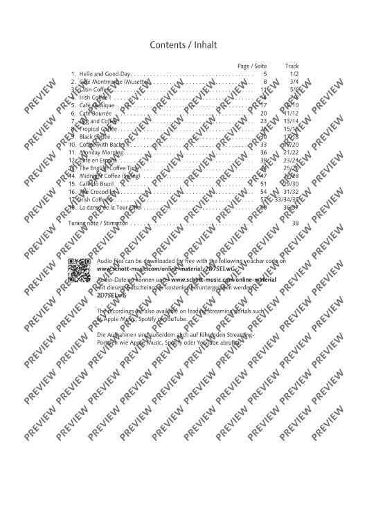 Close your eyes and relax: these pieces are as pleasant and evocative for the listener as a cup of coffee, and they're charming to play too! Together with the audio online material and the piano accompaniment, the pieces are suitable for lessons, concerts or just music-making at home. Chord symbols facilitate accompaniment with guitar, accordion, or other instruments. Other editions: My Blue Violin (ED 21767) and The Merry Fiddler (ED 21768).
