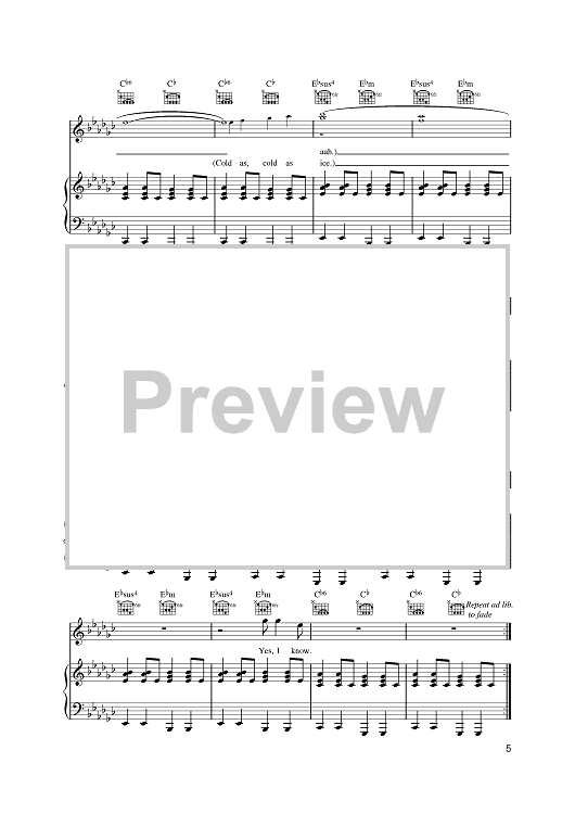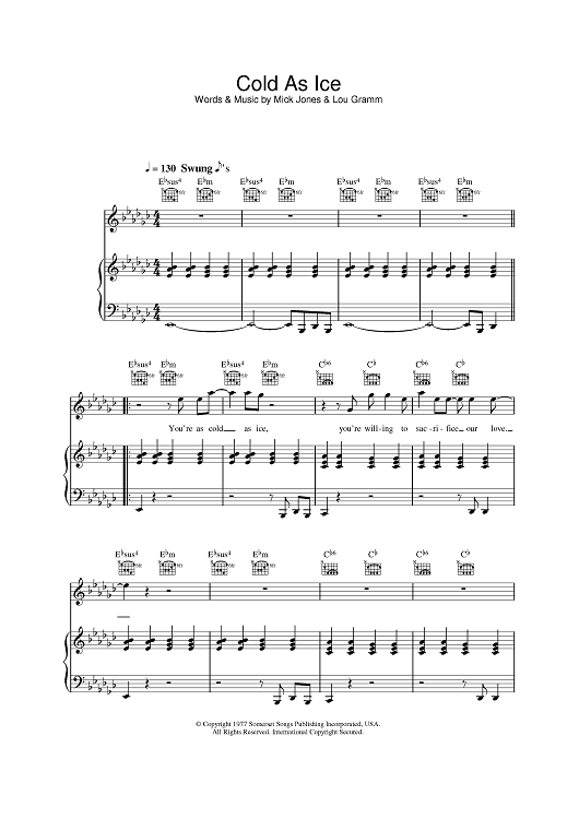 Digital Sheet Music for Cold As Ice by Foreigner, Lou Gramm, Mick Jones scored for Piano/Vocal/Chords; id:401873