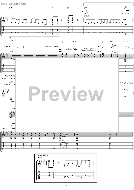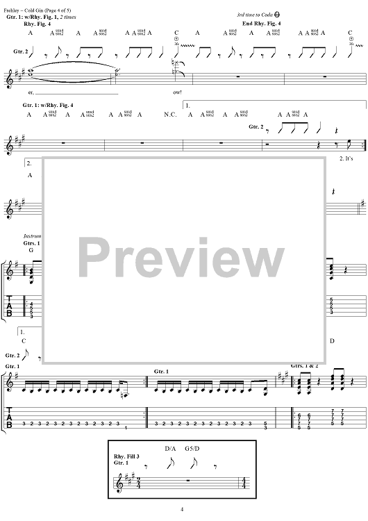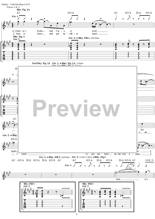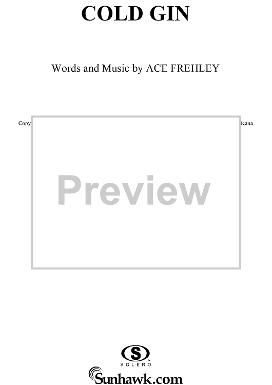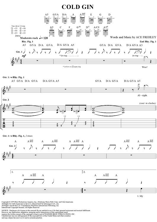 Digital Sheet Music for Cold Gin by Ace Frehley, KISS scored for Guitar Tab/Vocal; id:206907