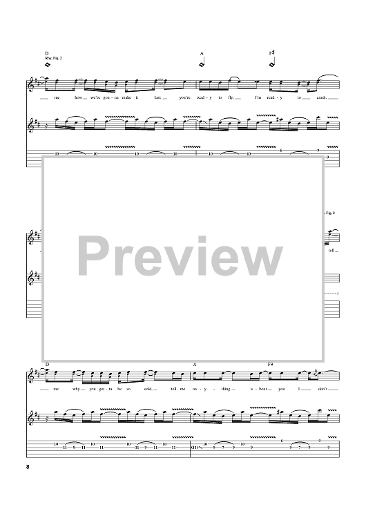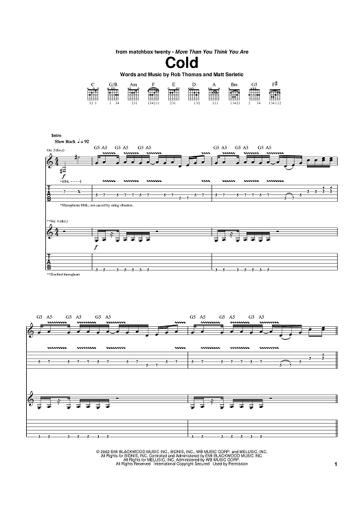 Digital Sheet Music for Cold by Matchbox Twenty, Rob Thomas, Matt Serletic scored for Guitar Tab; id:372471