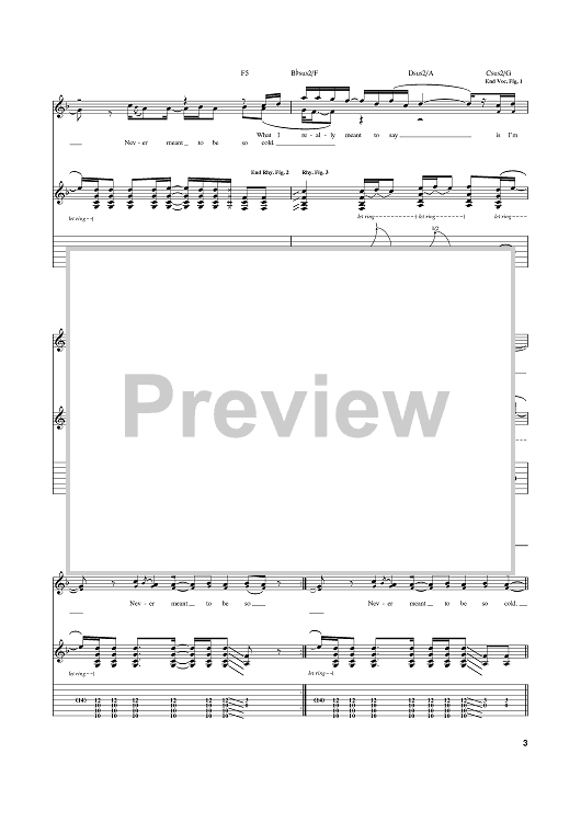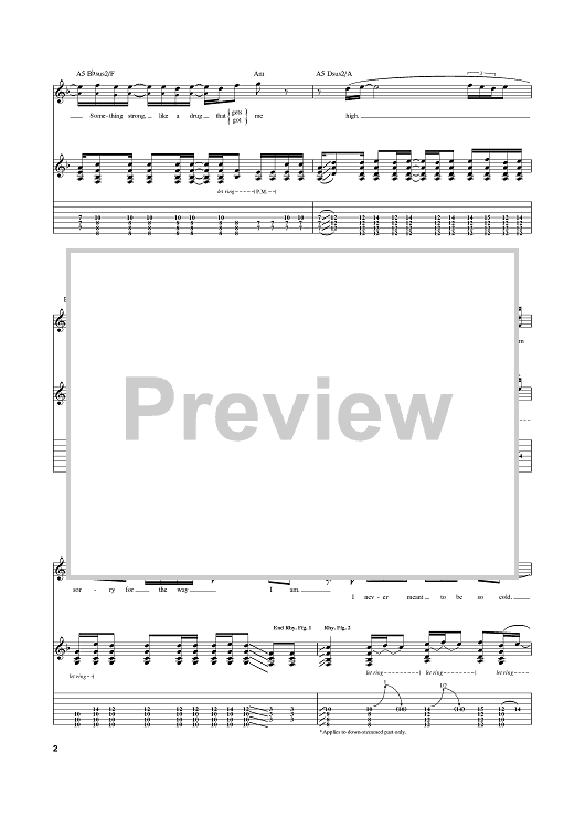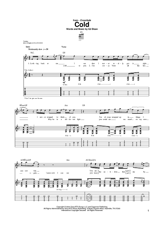Digital Sheet Music for Cold by Crossfade, Ed Sloan scored for Guitar Tab; id:383776