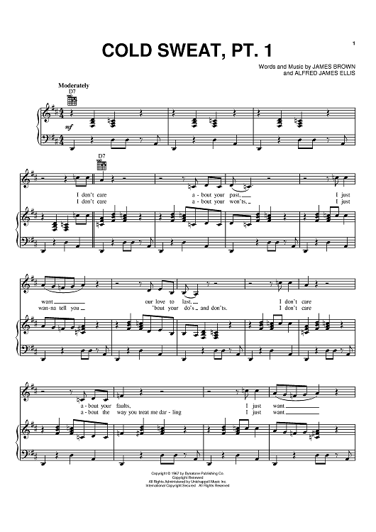 Digital Sheet Music for Cold Sweat, Pt. 1 by James Brown, Alfred "Pee Wee" Ellis scored for Piano/Vocal/Chords; id:368591