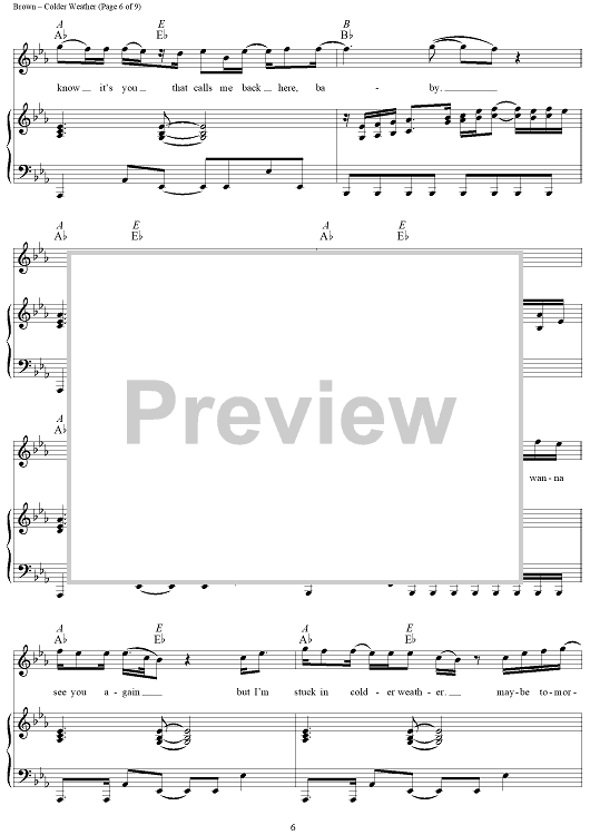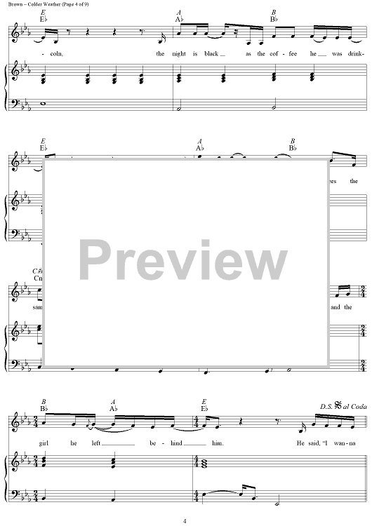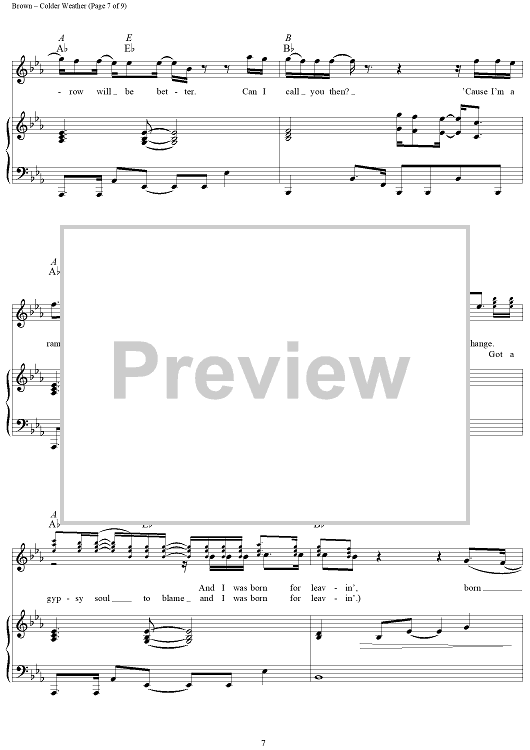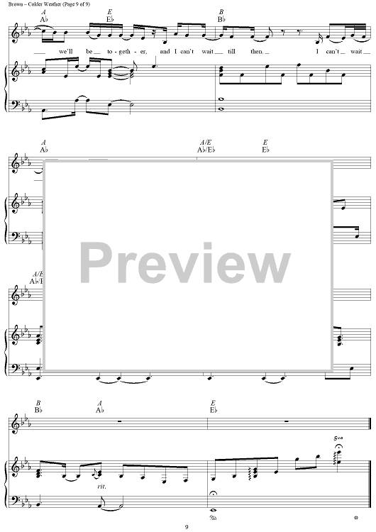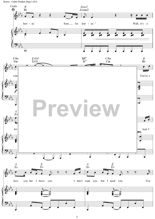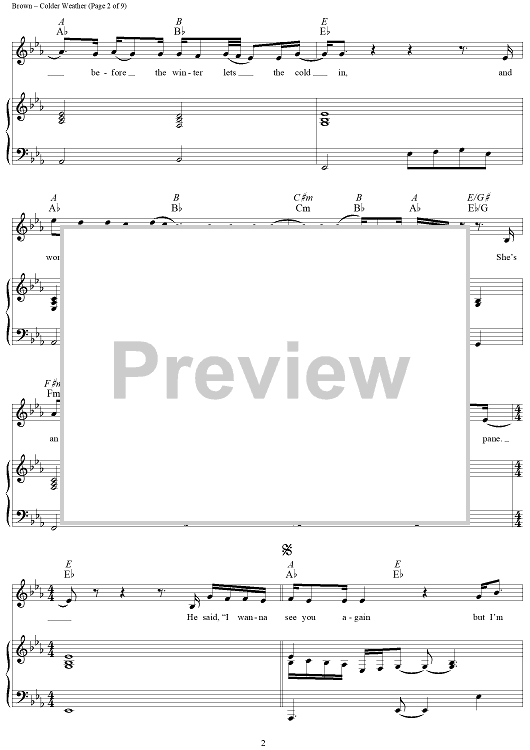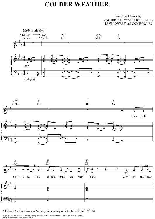 Digital Sheet Music for Colder Weather by Zac Brown, Wyatt Durrette, Levi Lowery, Coy Bowles, Zac Brown Band scored for Piano/Vocal/Chords; id:419470