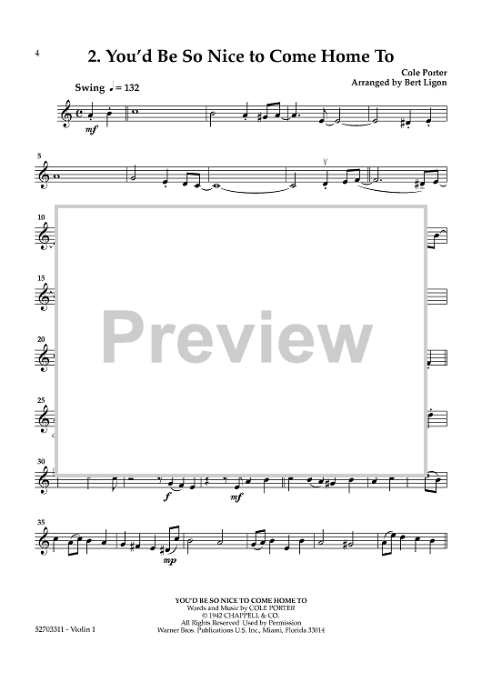 Digital Sheet Music for Cole Porter Album: Volume 2 - Violin 1 by Cole Porter, Bert Ligon scored for String Quartet; id:463451