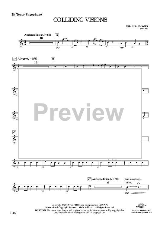 Digital Sheet Music for Colliding Visions - Bb Tenor Sax by Brian Balmages scored for Beginning Band; id:415204