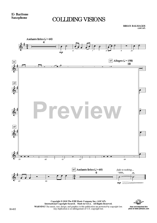 Digital Sheet Music for Colliding Visions - Eb Baritone Sax by Brian Balmages scored for Beginning Band; id:415205