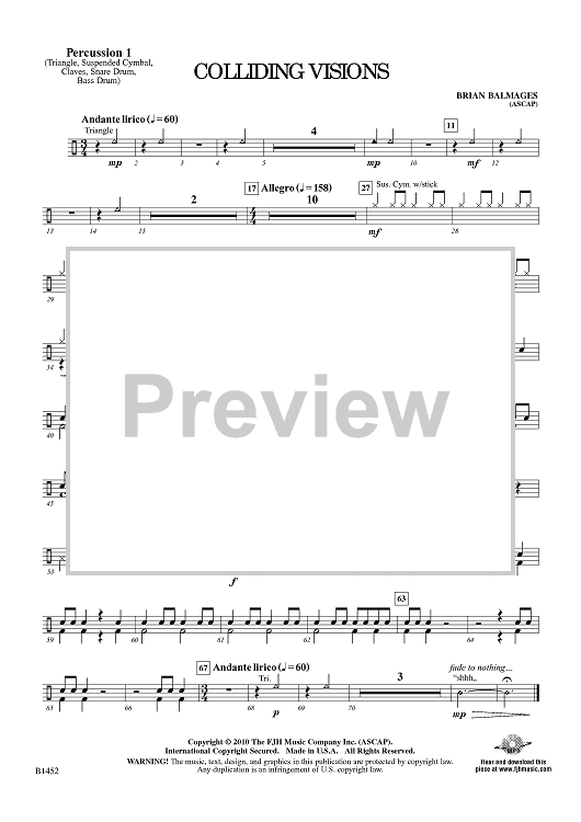 Digital Sheet Music for Colliding Visions - Percussion 1 by Brian Balmages scored for Beginning Band; id:415215