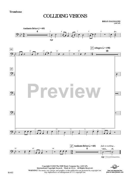 Digital Sheet Music for Colliding Visions - Trombone by Brian Balmages scored for Beginning Band; id:415209