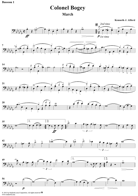 "Colonel Bogey March - Bassoon 1" Sheet Music by Kenneth J. Alford