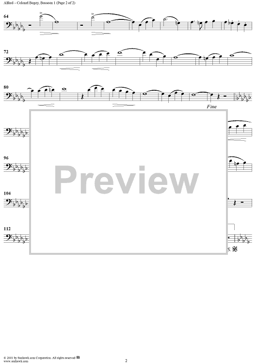 Digital Sheet Music for Colonel Bogey March - Bassoon 1 by Kenneth J. Alford scored for Concert Band; id:281192