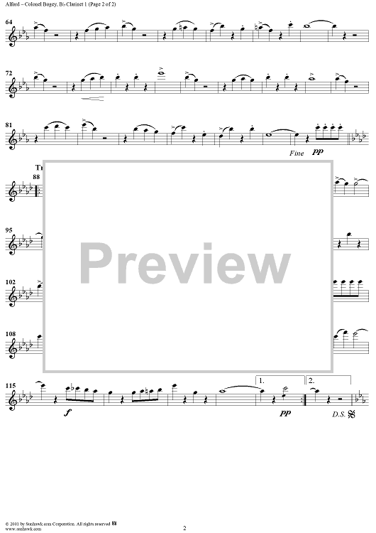Digital Sheet Music for Colonel Bogey March - Clarinet 1 by Kenneth J. Alford scored for Concert Band; id:281325