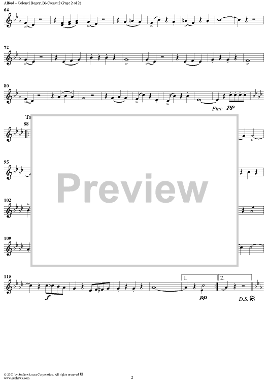 Digital Sheet Music for Colonel Bogey March - Cornet 2 by Kenneth J. Alford scored for Concert Band; id:281561