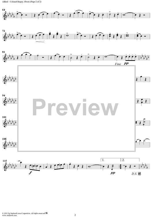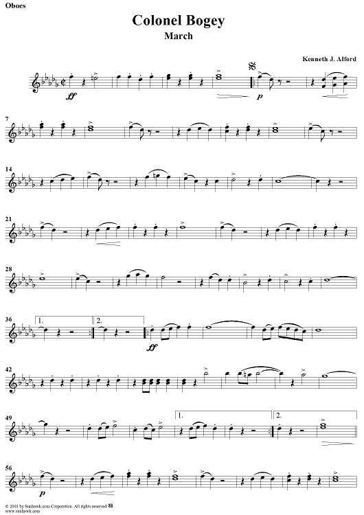 "Colonel Bogey March - Oboes" Sheet Music by Kenneth J. Alford