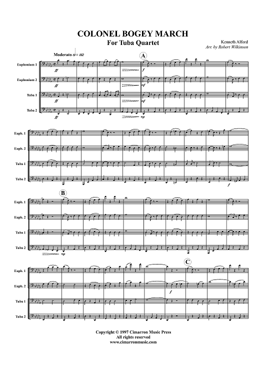 Digital Sheet Music for Colonel Bogey March - Score by Kenneth J. Alford, Robert Wilkinson scored for Tuba Quartet; id:316218