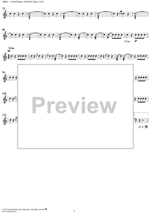 Digital Sheet Music for Colonel Bogey March - Side Drum by Kenneth J. Alford scored for Concert Band; id:281712