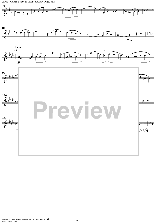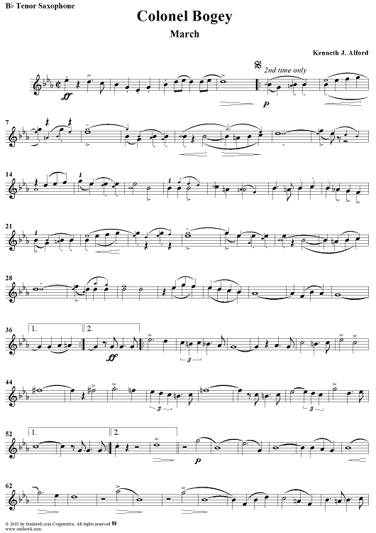 "Colonel Bogey March - Tenor Saxophone" Sheet Music by Kenneth J. Alford