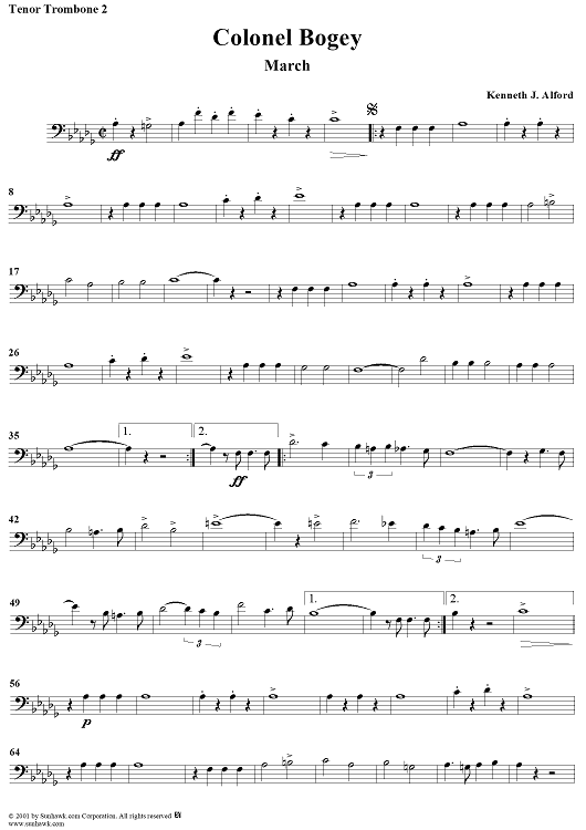 "Colonel Bogey March - Trombone 2" Sheet Music by Kenneth J. Alford