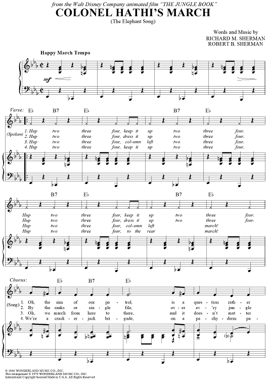 Digital Sheet Music for Colonel Hathi's March (The Elephant Song) by Richard M. Sherman, Robert B. Sherman scored for Piano/Vocal/Chords; id:423132