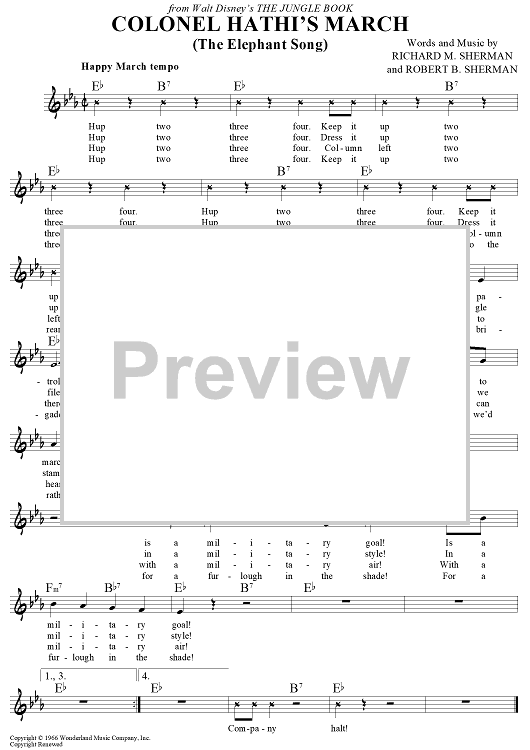 Digital Sheet Music for Colonel Hathi's March (The Elephant Song) by Richard M. Sherman, Robert B. Sherman scored for Lead Sheet; id:440126